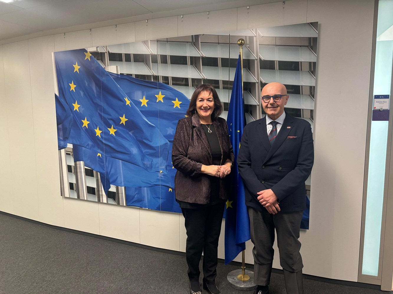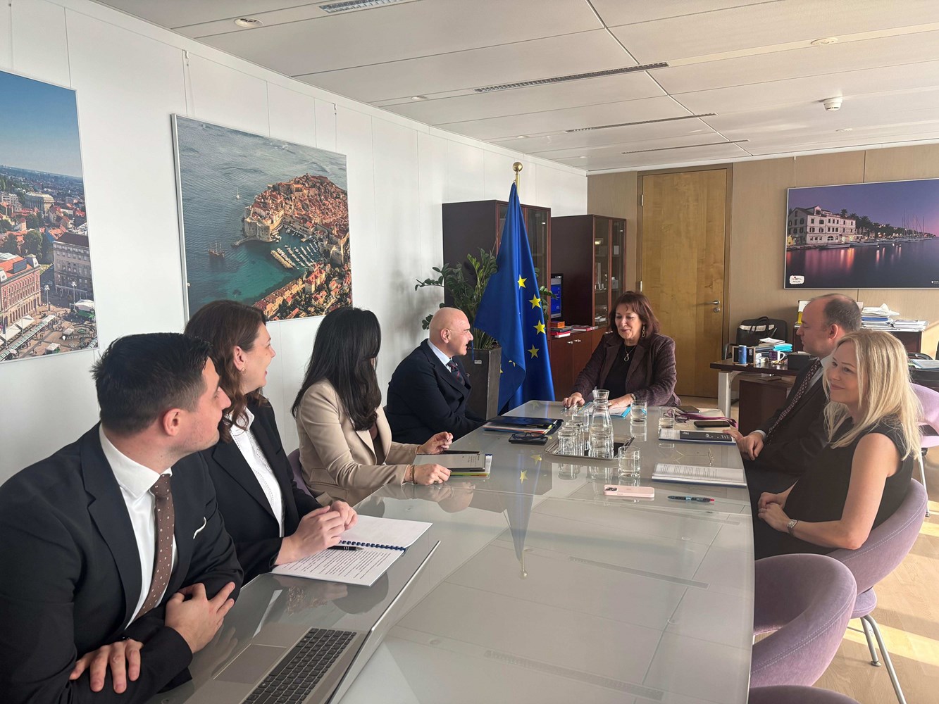 S povjerenicom Šuicom ministar je razgovarao o geopolitičkoj situaciji u Mediteranu i Bliskom istoku, ulozi Hrvatske u promicanju stabilnosti kroz predsjedanje skupinom MED‑9 te o inicijativi Pakt za Mediteran. Razgovor je obuhvatio i pitanja sigurnosti, zapošljavanja, razvoja vještina i mobilnosti radne snage u mediteranskom prostoru, kao i planove za razvoj demografske politike na nacionalnoj i EU razini.